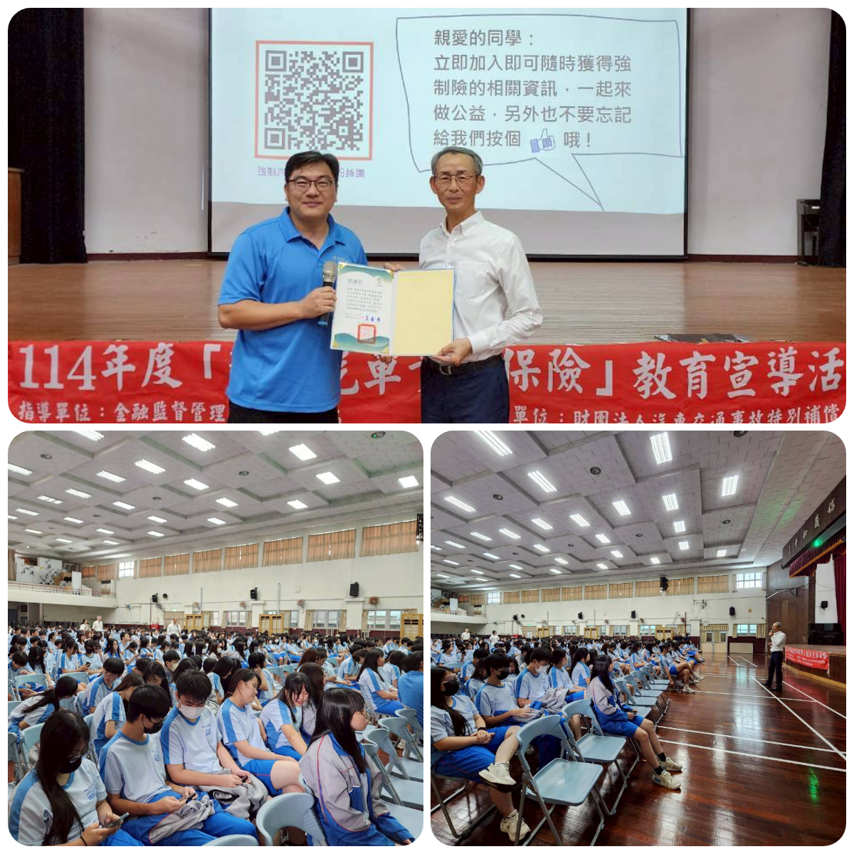 公告內容 | 強制車險教宣小組114年10月1日來到澎湖,在澎湖科技大學辦理教育宣導活動,向學生說明交通安全的注意事項及強制汽車責任保險的觀念,華國道講師以深入淺出的方式的講解PPT簡報內容,配合交通事故影片輔助說明,加深學生印象。再搭配有獎徵答,與學生互動熱絡,活動圓滿完成。
