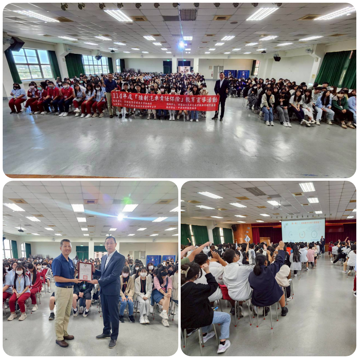 | 公告內容 | 強制車險教宣小組114年11月14日來到嘉義,在敏惠醫護管理專科學校辦理教育宣導活動,向學生說明交通安全的注意事項及強制汽車責任保險的觀念,丁榮光講師以深入淺出的方式的講解PPT簡報內容,配合交通事故影片輔助說明,加深學生印象。與學生互動熱絡,活動圓滿完成。