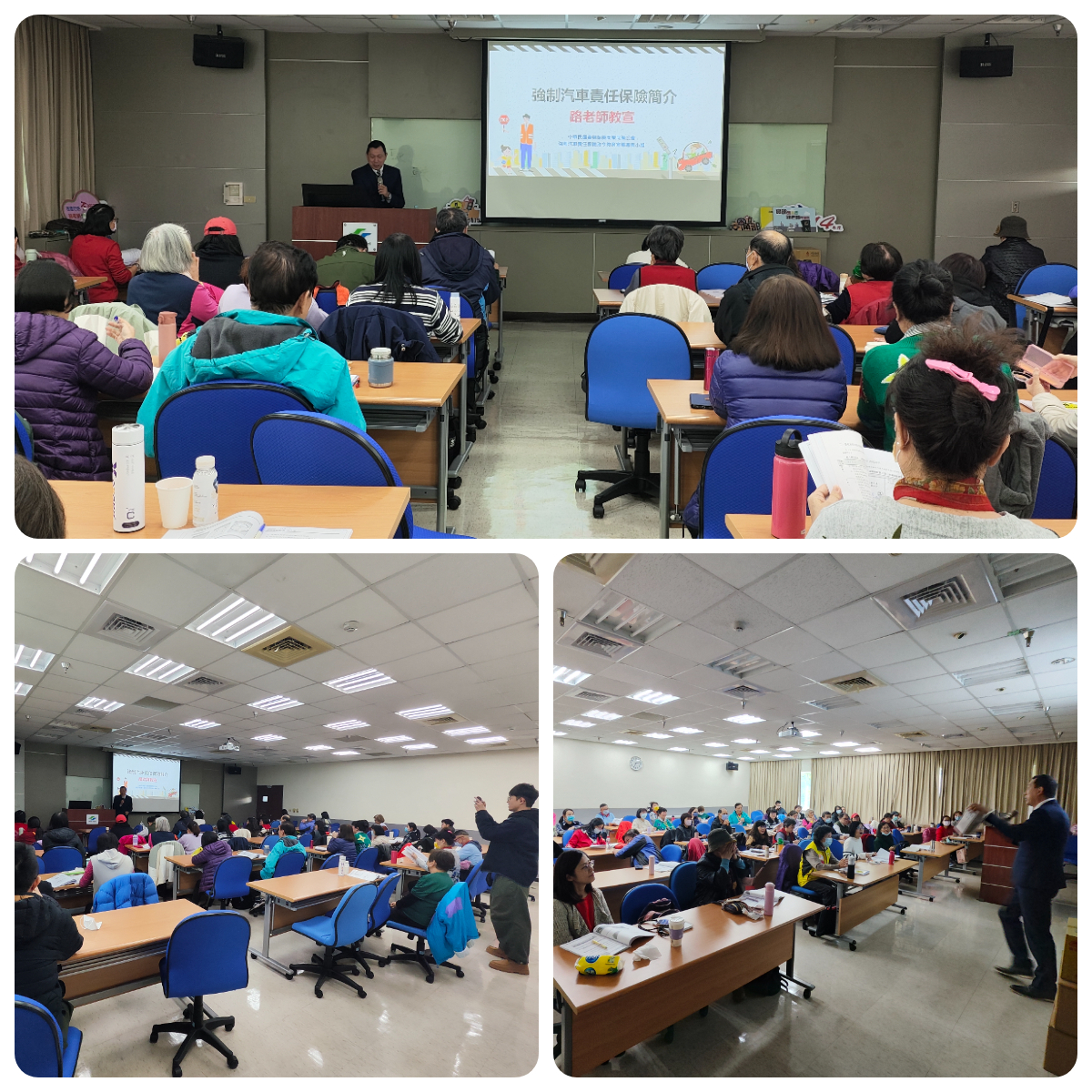 「115年度路老師培訓計畫」115年1月13日在台北捷運北投會館舉行,強制車險教宣小組丁榮光講師以深入淺出的方式的講解PPT簡報內容,配合交通事故影片輔助說明,講解強制車險保障車禍受害人的目的及特點,讓參與培訓的學員更了解強制車險的重要性。並以有獎問答方式與培訓學員互動熱絡,活動圓滿完成。